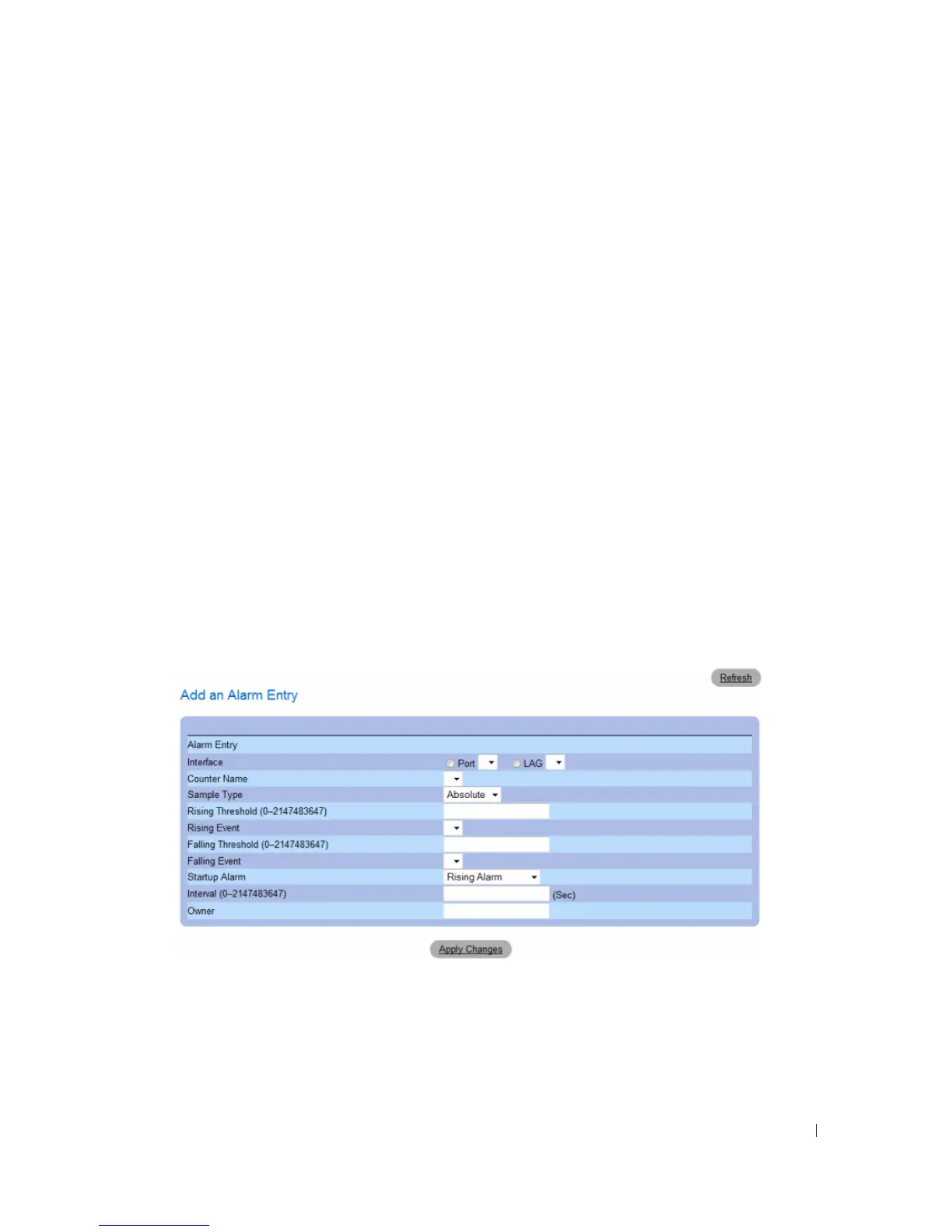alarm. The falling threshold is graphically presented on top of the graph bars. Each monitored variable