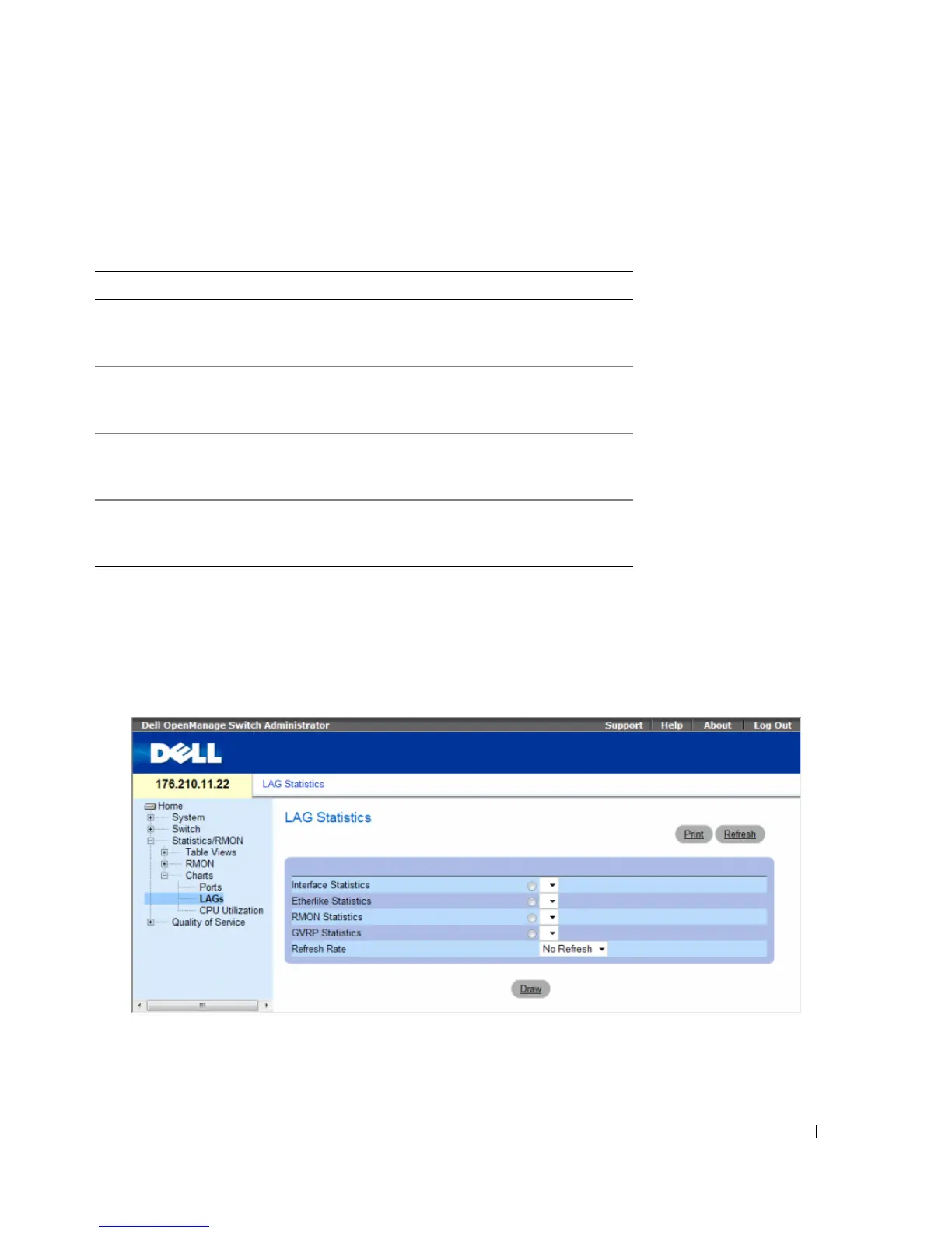 page, click Statistics/RMON→ Charts→ LAG Statistics in the tree view.