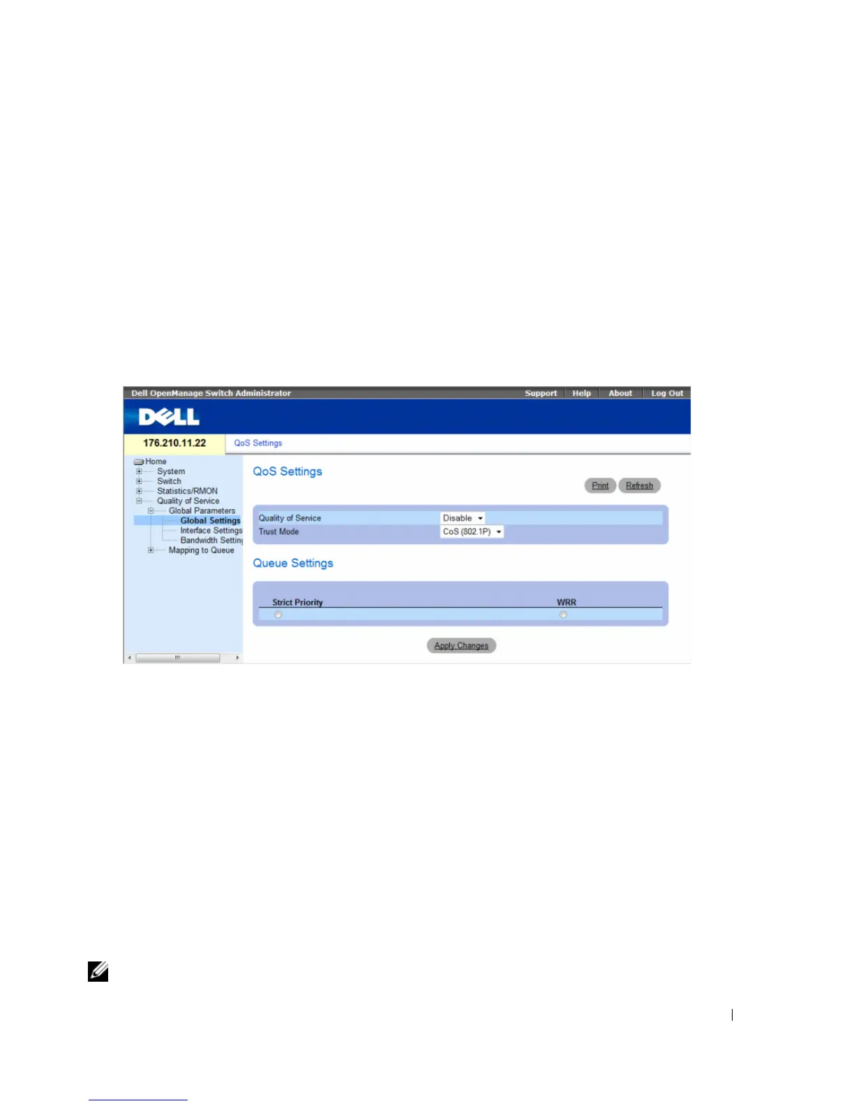 In addition, the Global Settings page enables defining queues as either Strict Priority (SP) or Weighted