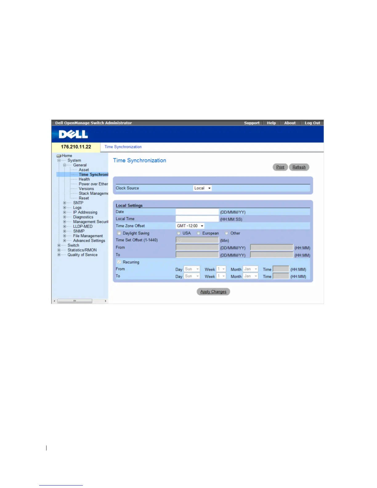 For more information on SNTP, see "Configuring SNTP Settings" on page 104.
