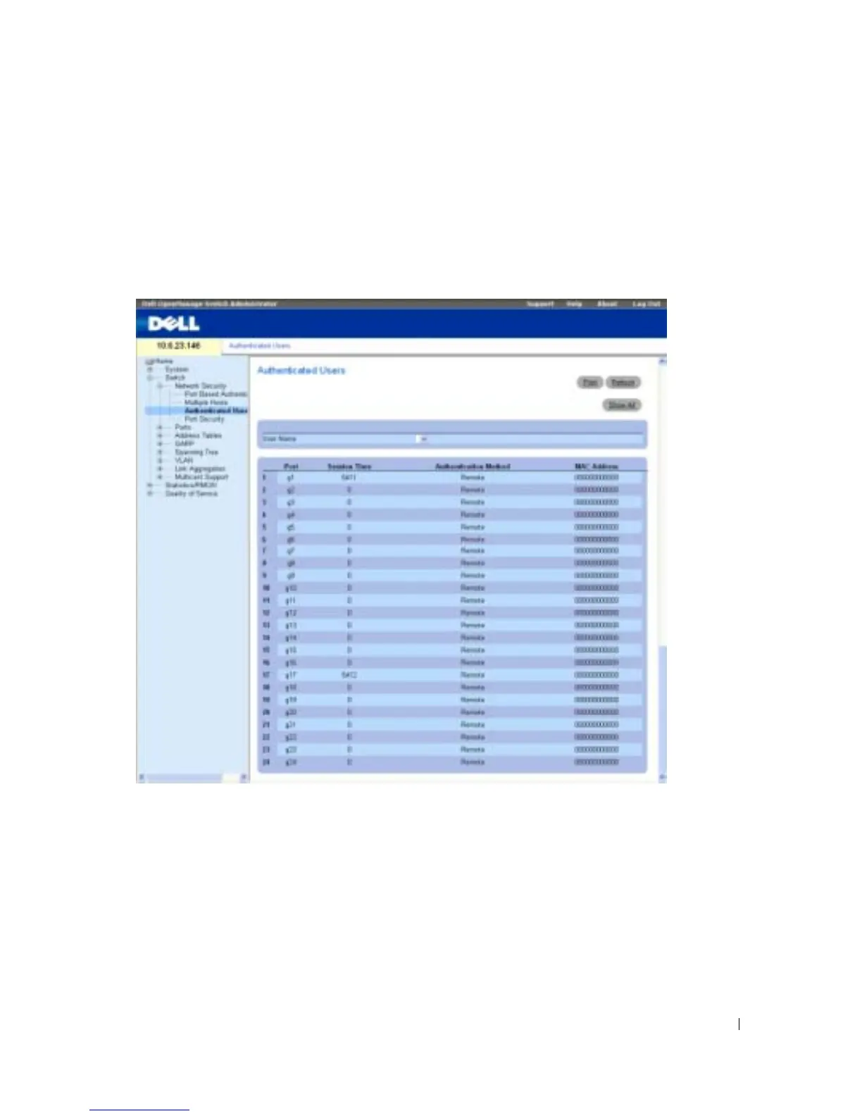 — The port number(s) used for authentication - per user name.