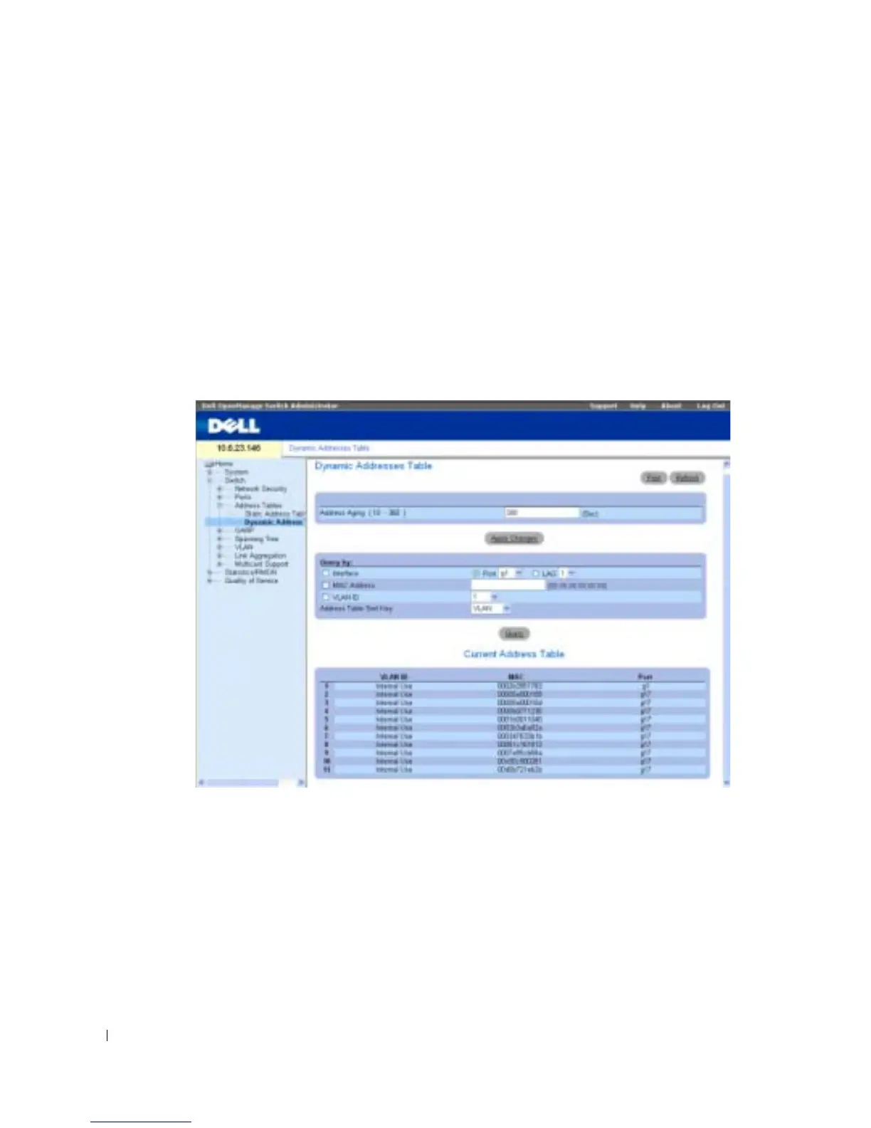 also contains information about the aging time before a dynamic MAC address is erased, and