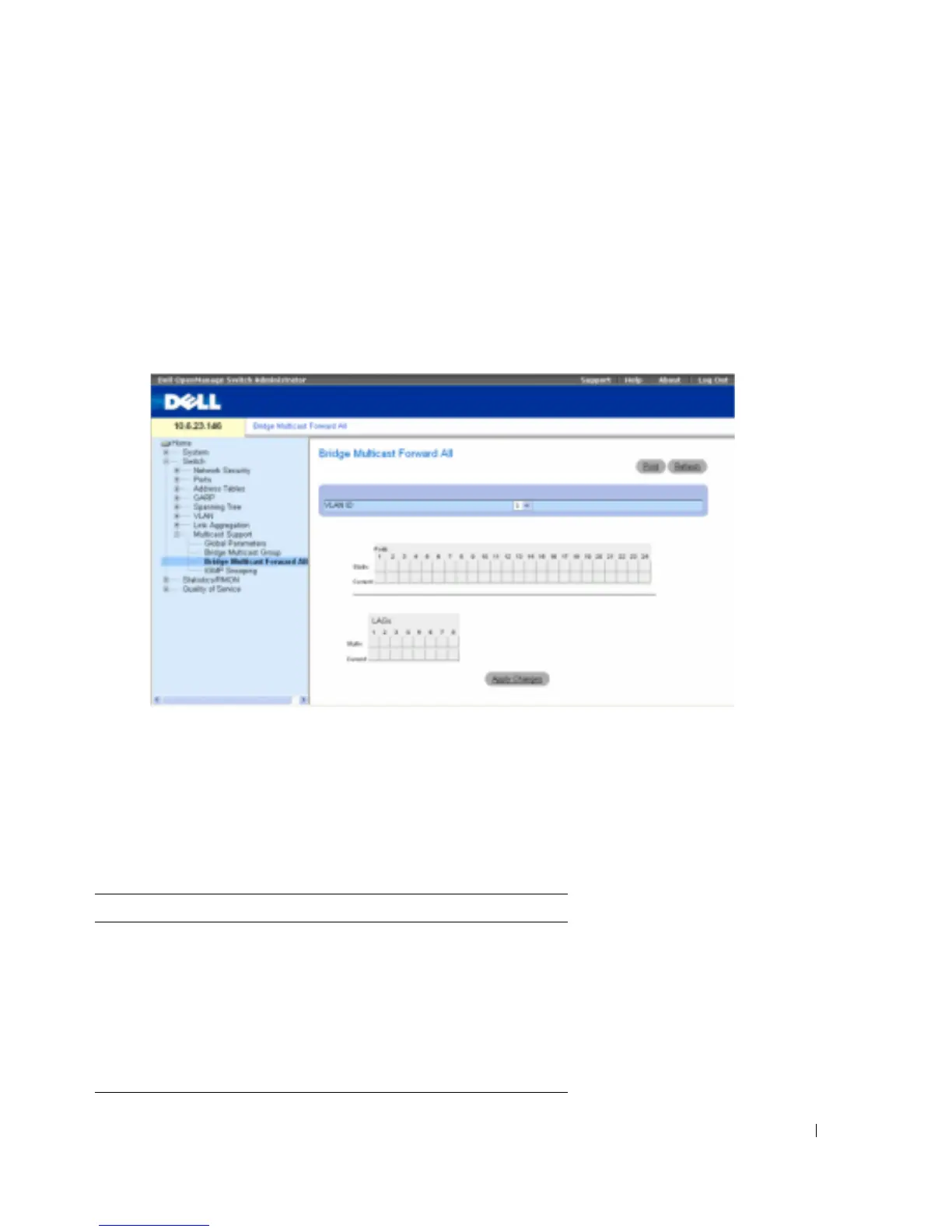 Bridge Multicast Forward All Router/Port Control Settings Table