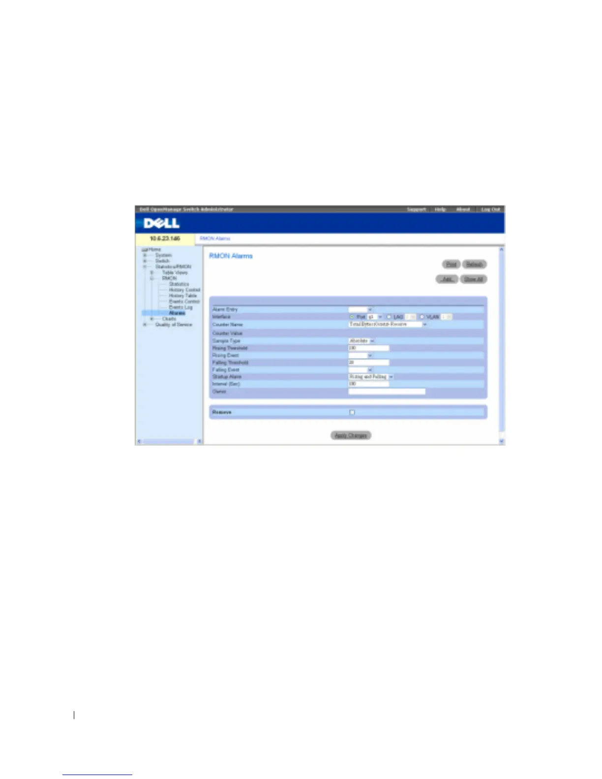 network problem, or event, is detected. Rising and falling thresholds generate events. To open the