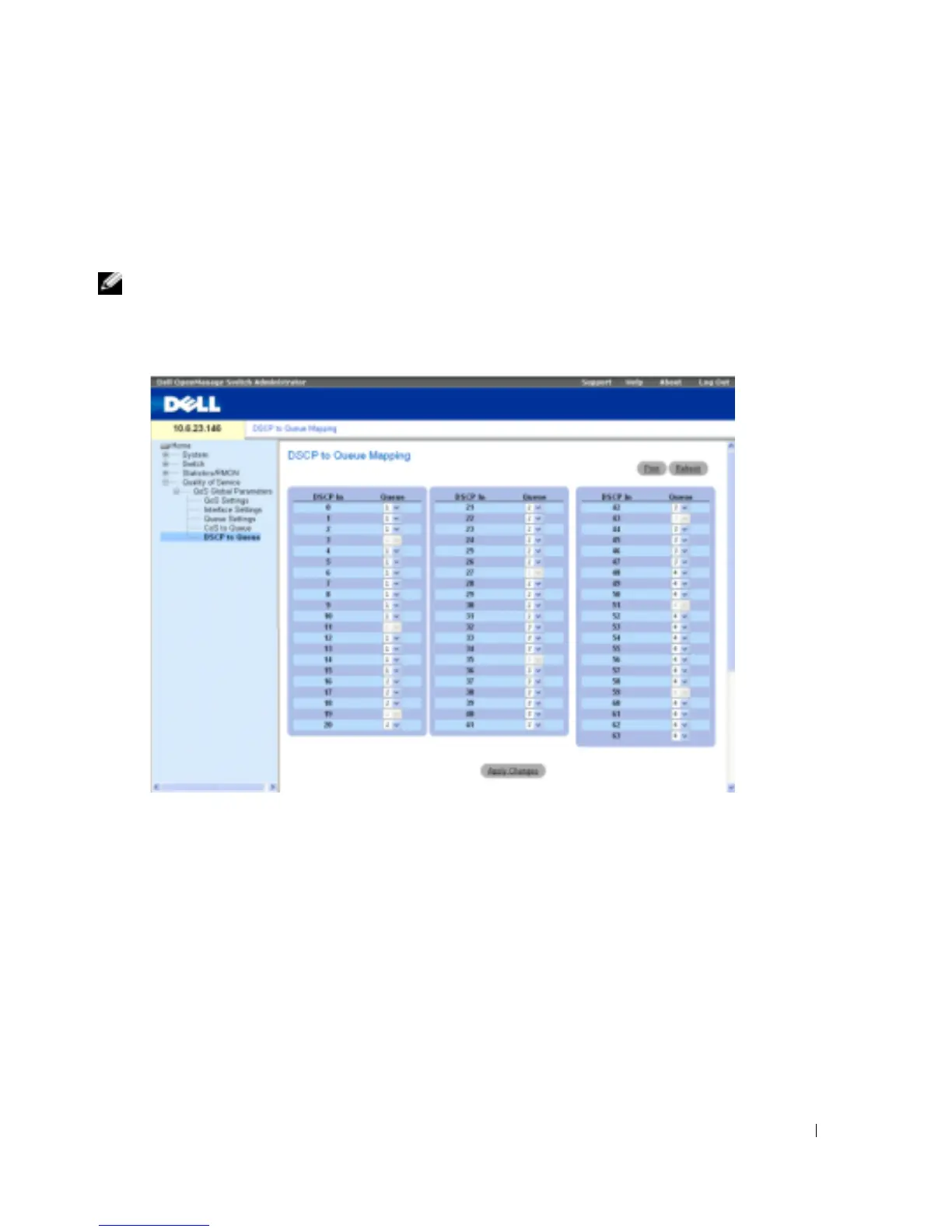 NOTE: For the list of the DSCP default queue settings, see "DSCP to Queue Mapping Table Default