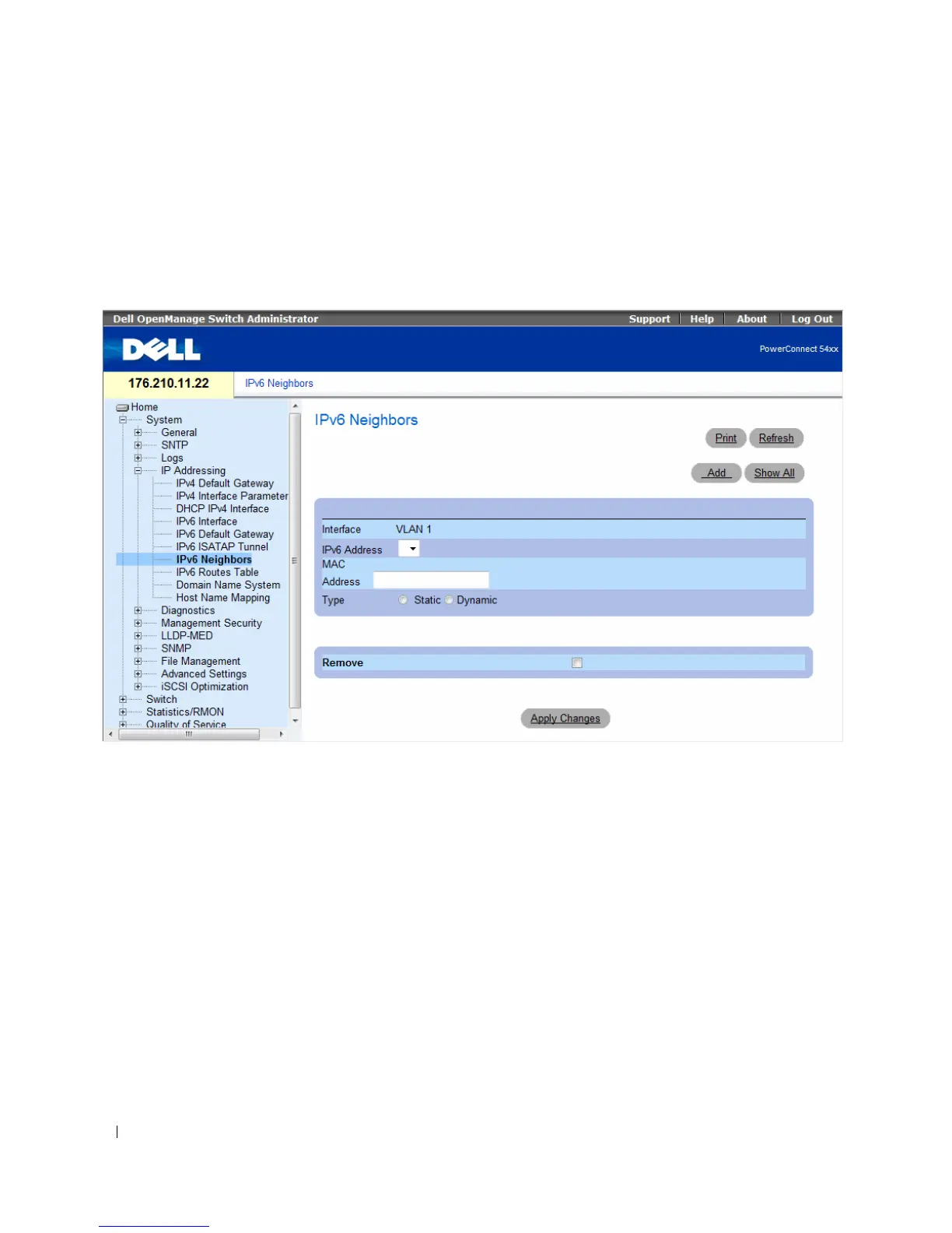 → IP Addressing→ IPv6 Neighbors in the tree view.