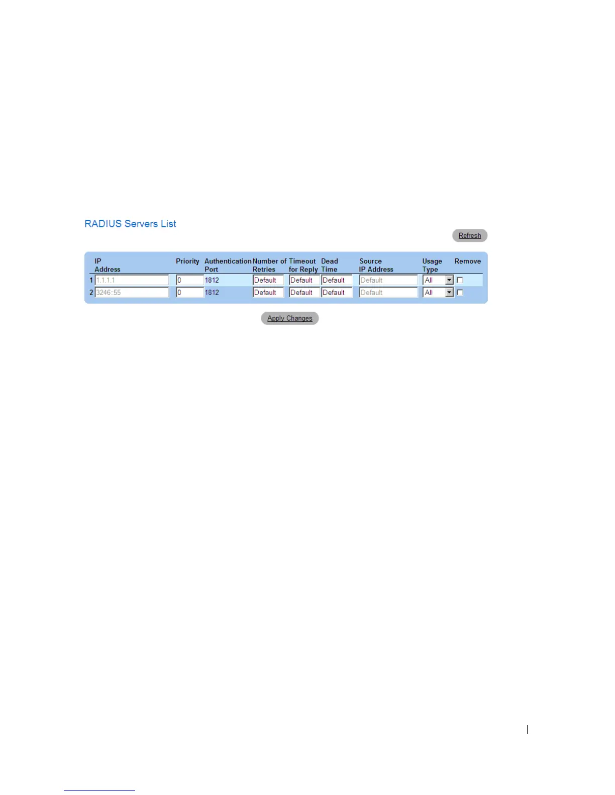 Deleting a RADIUS Server for the RADIUS Servers List: