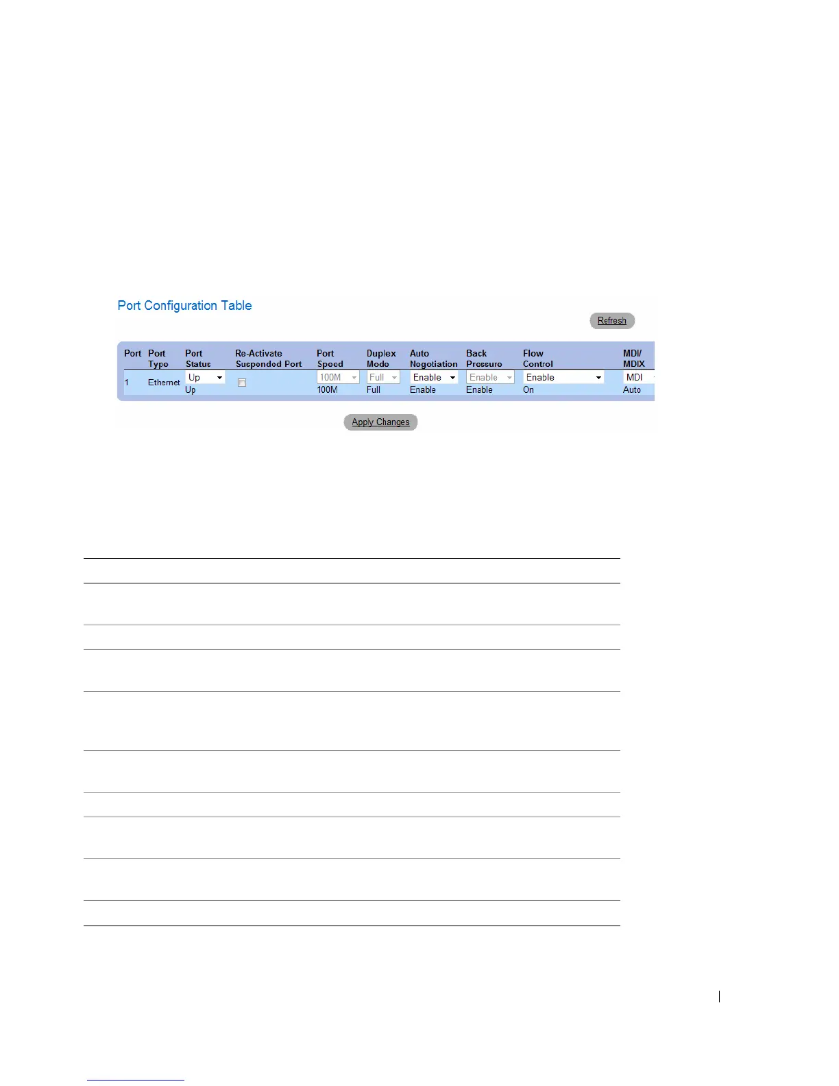 The following table summarizes the equivalent CLI commands for configuring ports as displayed in the