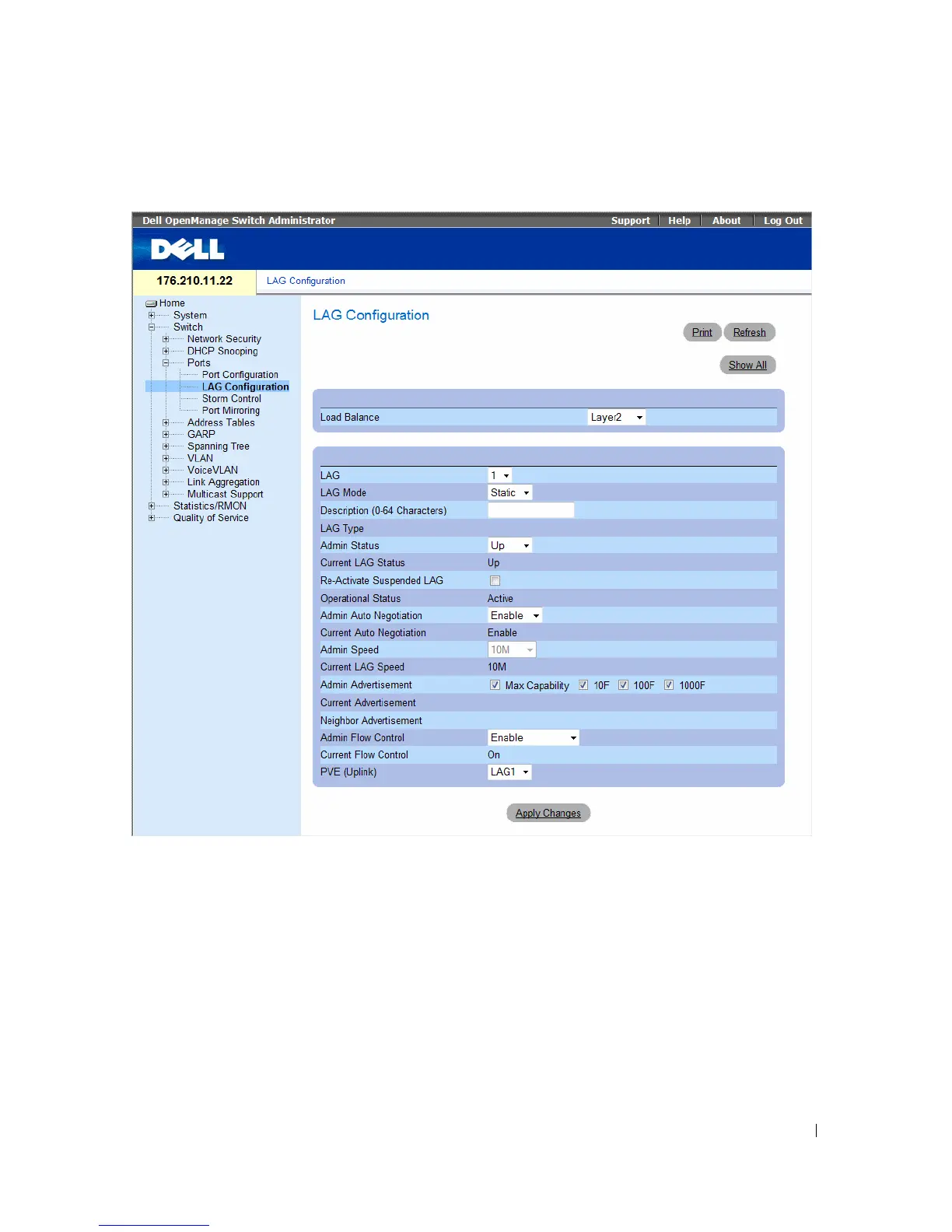 Indicates the load balancing type enabled on the LAG. The possible field values are: