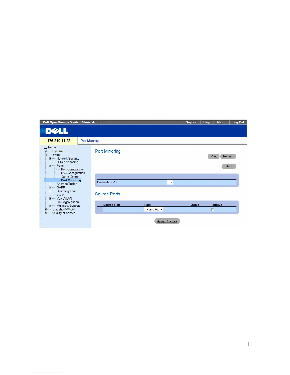 To open the Port Mirroring page, click Switch→ Ports→ Port Mirroring in the tree view.