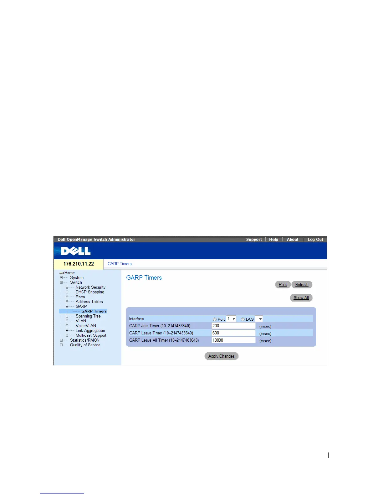 page, click Switch→ GARP → GARP Timers in the tree view.
