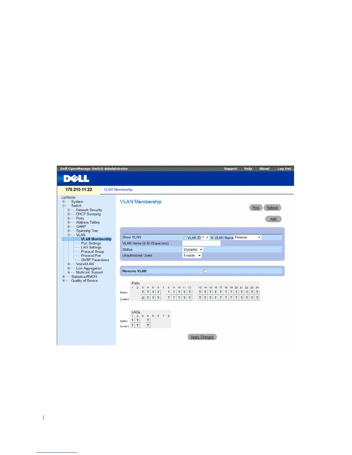 from the system. To open the VLAN Membership page, click Switch