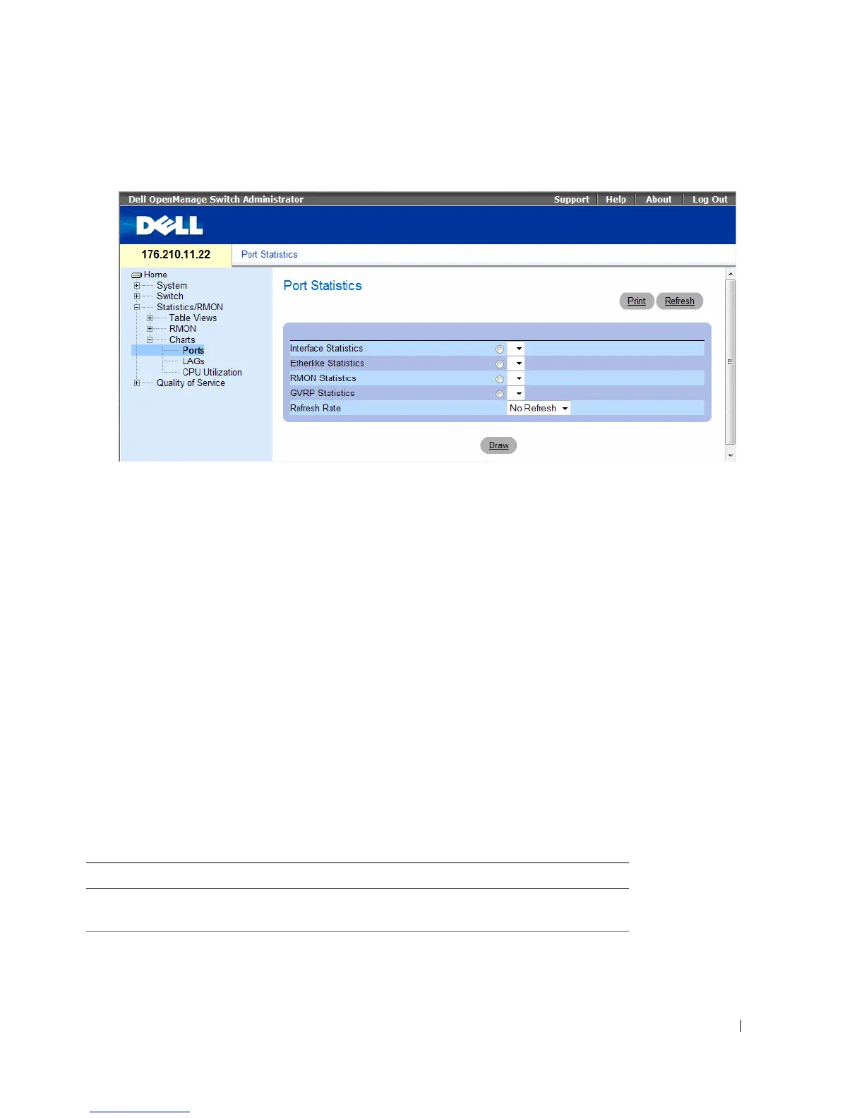 The following table summarizes the equivalent CLI commands for viewing port statistics.