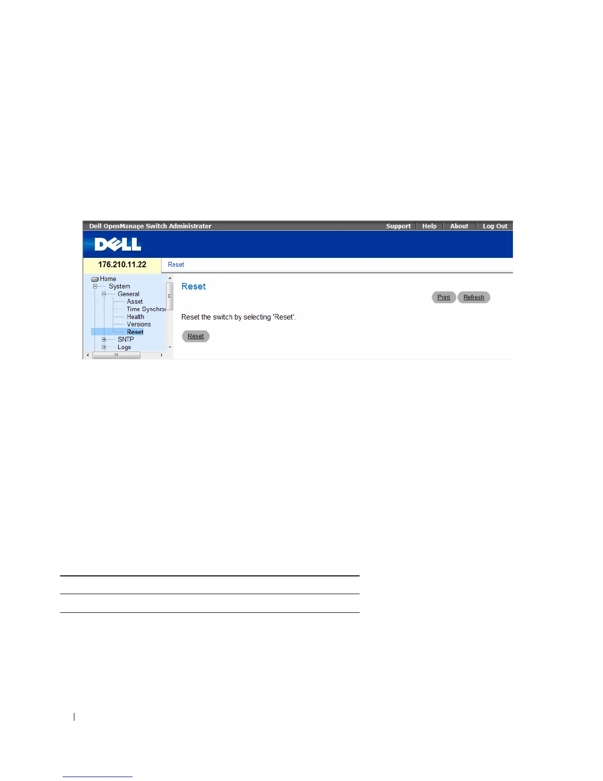 The Reset page enables the device to be reset from a remote location. Save all changes to the Running