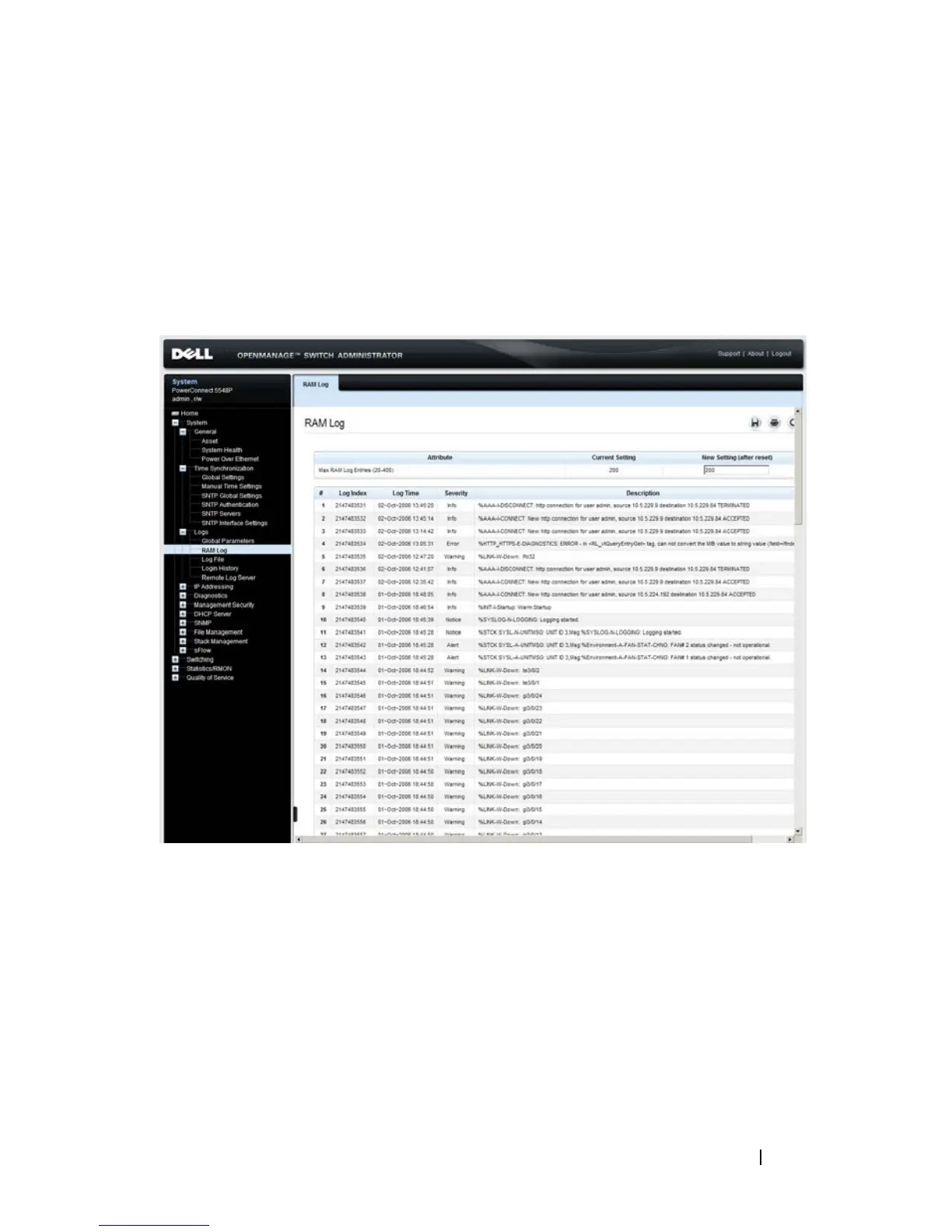 number of RAM log entries permitted, is displayed. When the log buffer is