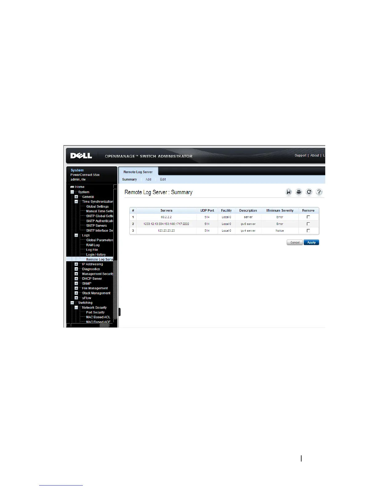 Log messages can be sent to remote log servers, using the SYSLOG protocol.