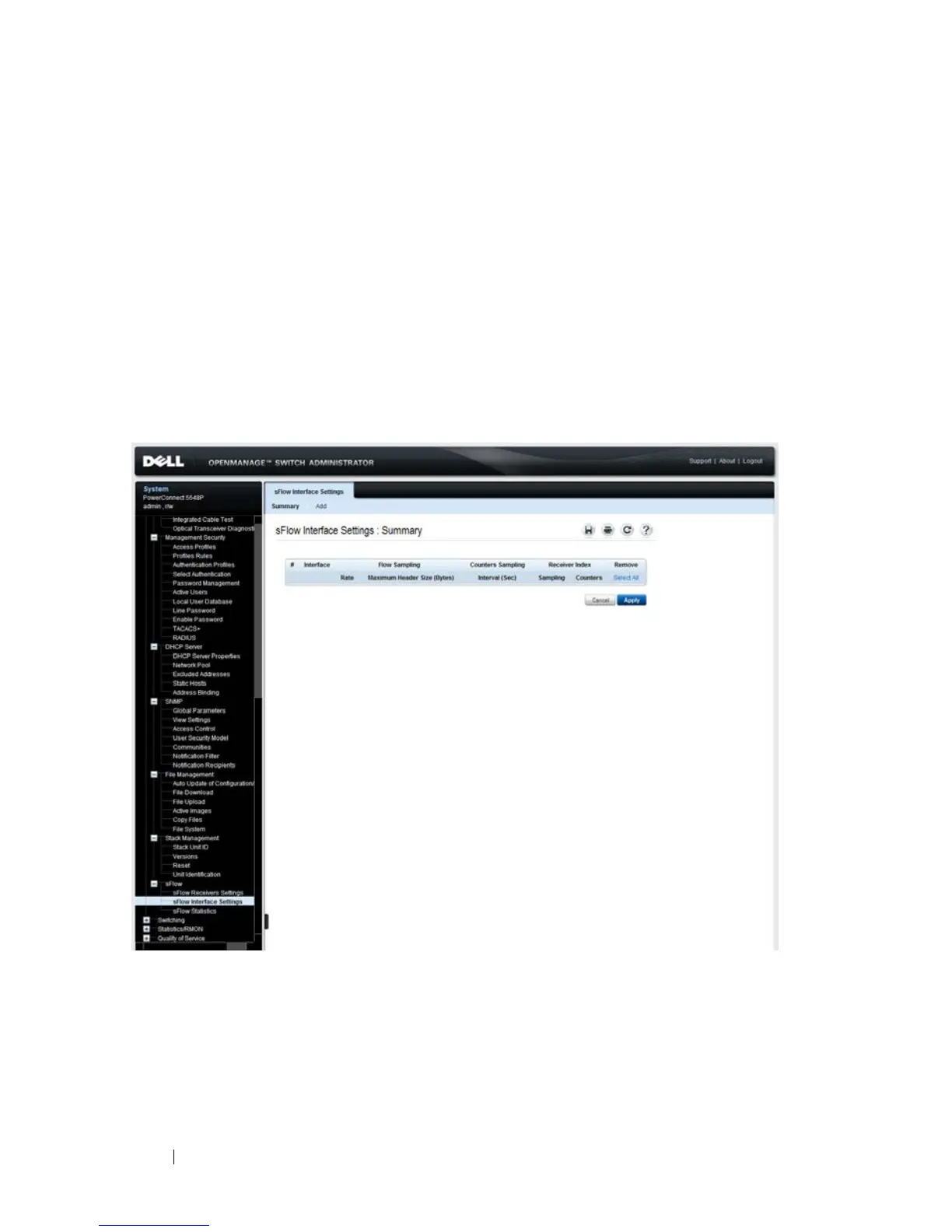 with a receiver. sFlow port settings can be configured only after a receiver has