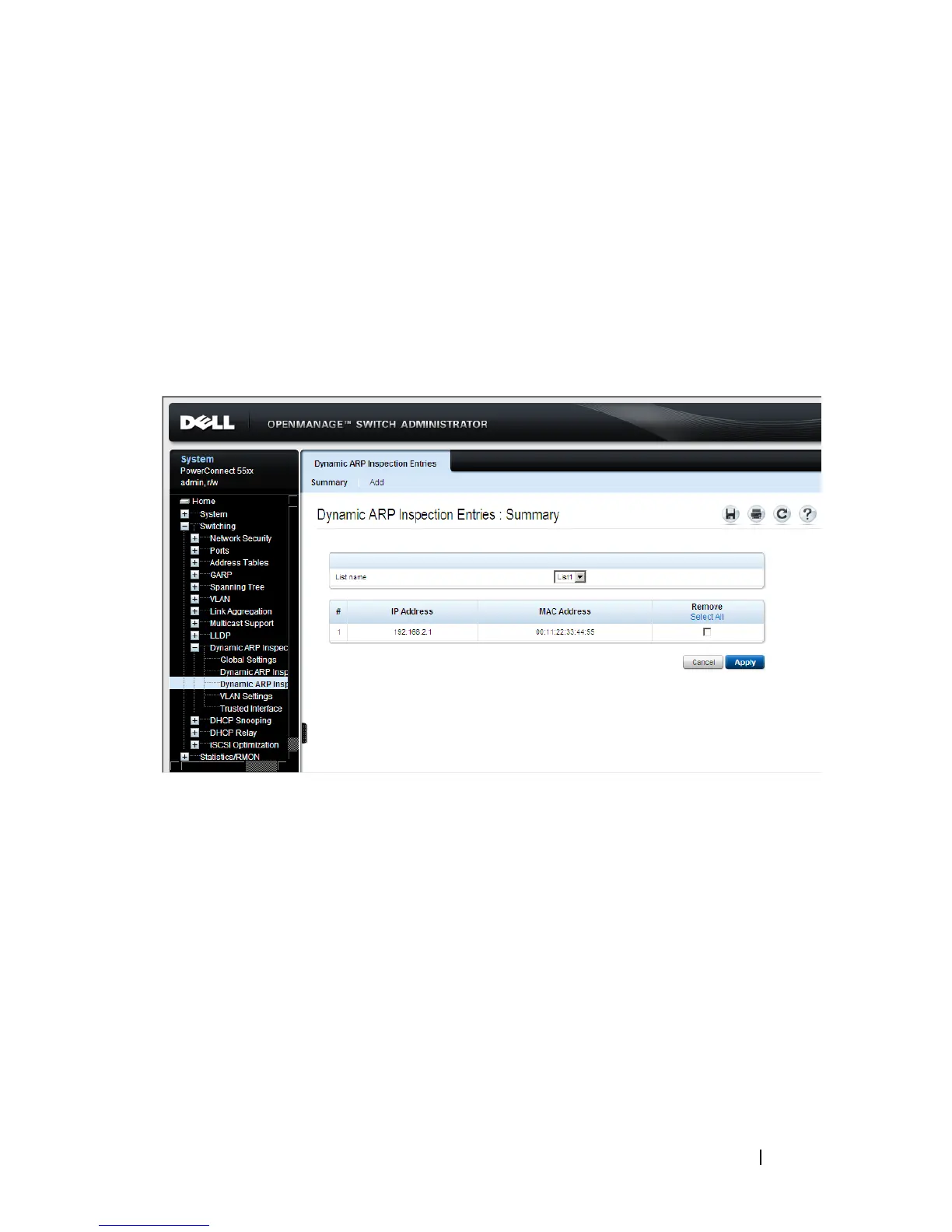 Figure 18-3. Dynamic ARP Inspection Entries: Summary
