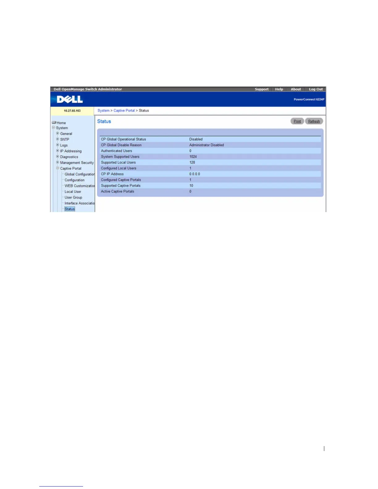 — Shows the captive portal IP address