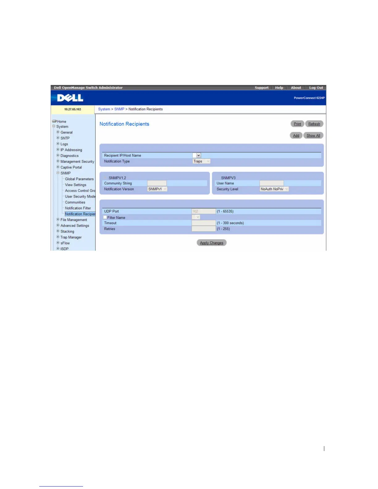 SNMP version 1 traps are sent. If Inform is selected as the Notification Type,