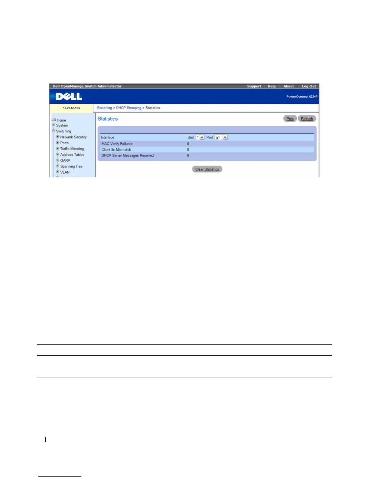 clear ip dhcp snooping statistics clears all DHCP Snooping statistics.