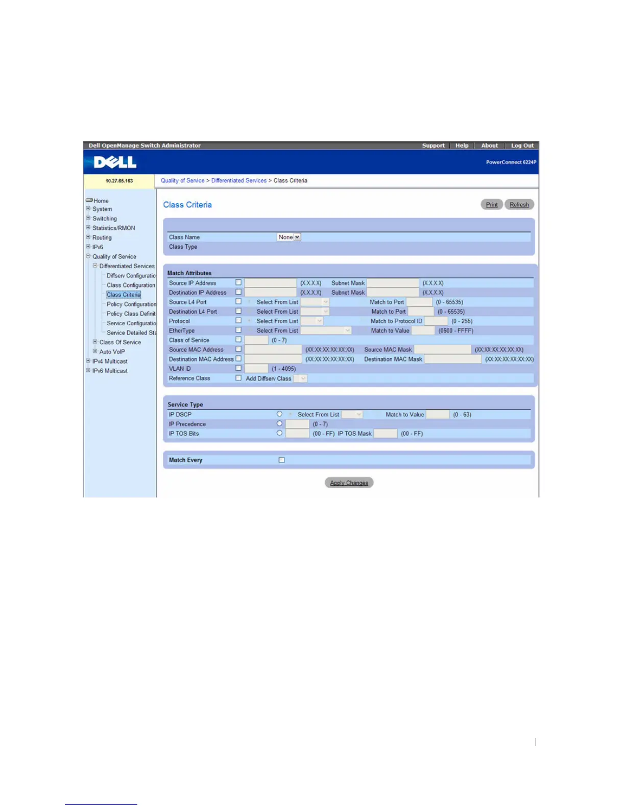 Use the following fields to match IPv4 packets to a class. Click the check box for each field to be used as