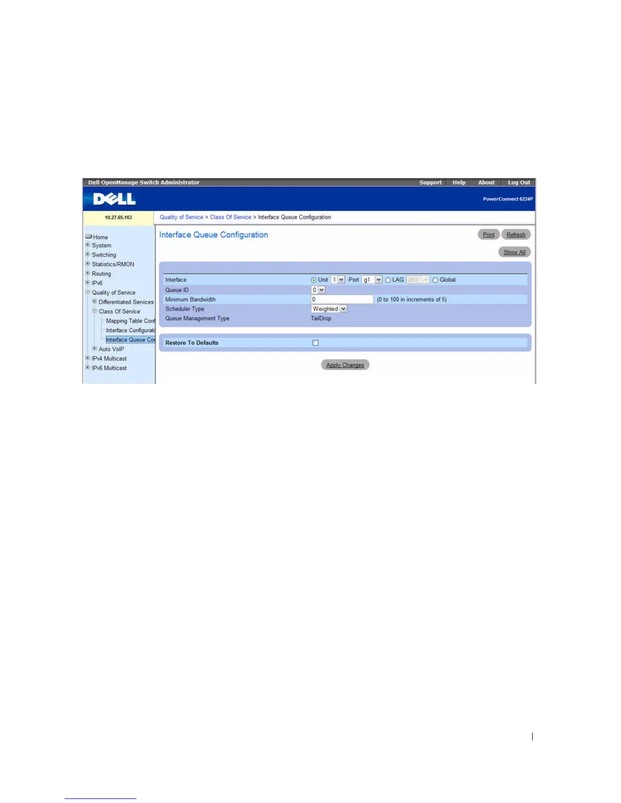 Interface Queue Configuration page, click Quality of Service
