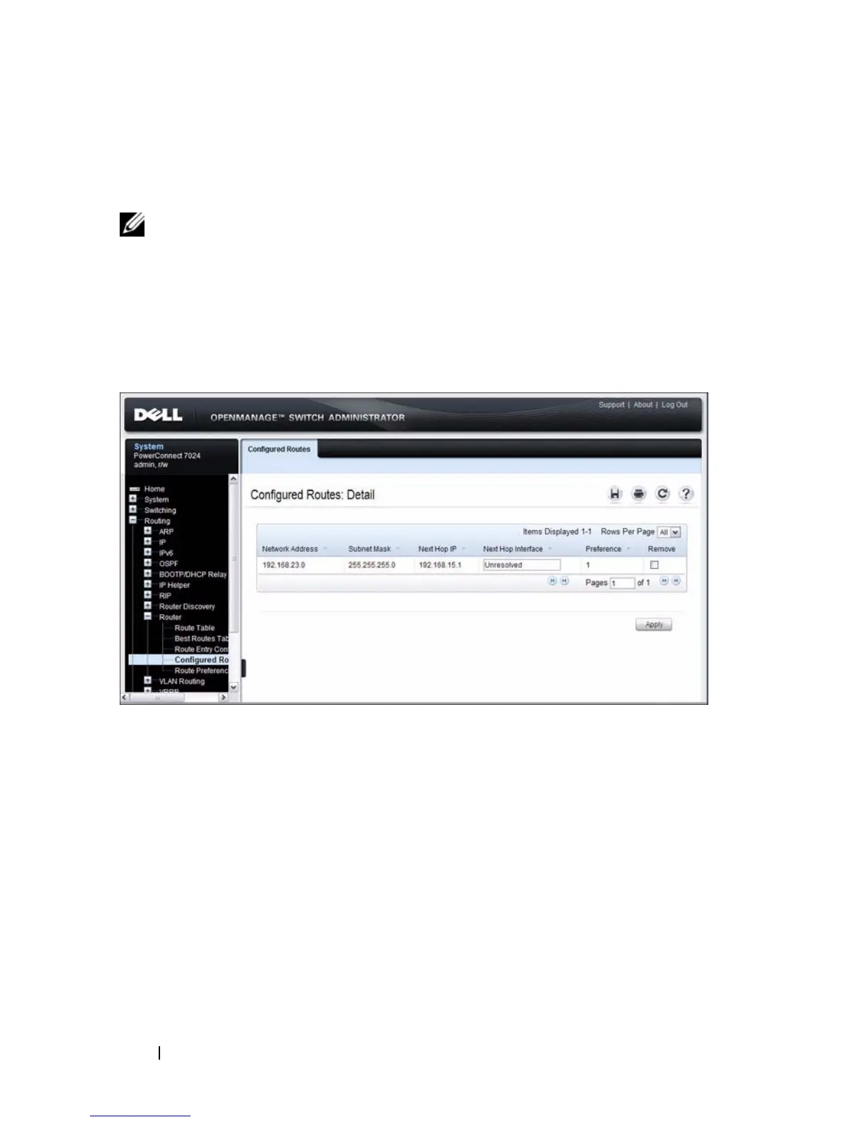 NOTE: For a static reject route, the next hop interface value is Null0. Packets to