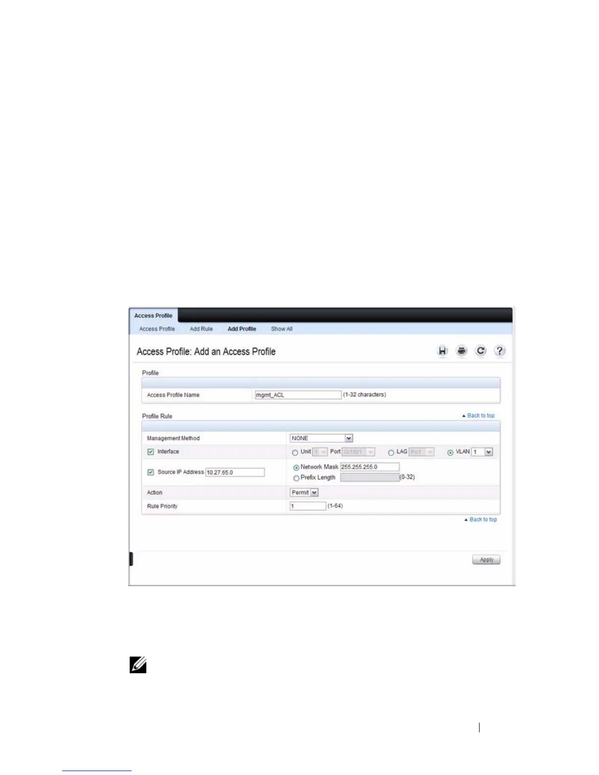 NOTE: Assigning an access profile to an interface implies that access