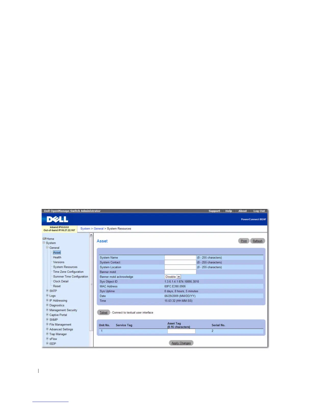 The General menu page contains links to pages that allow you to configure device parameters. Use this