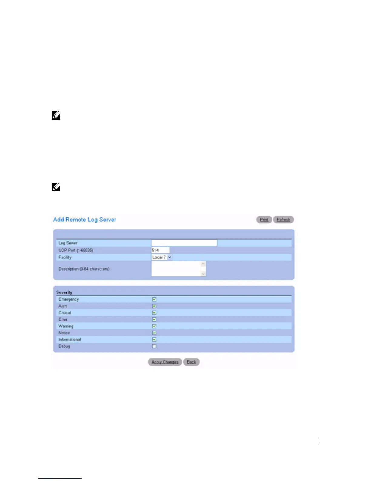 NOTE: Before adding a new server, determine the IP address of the remote log server.
