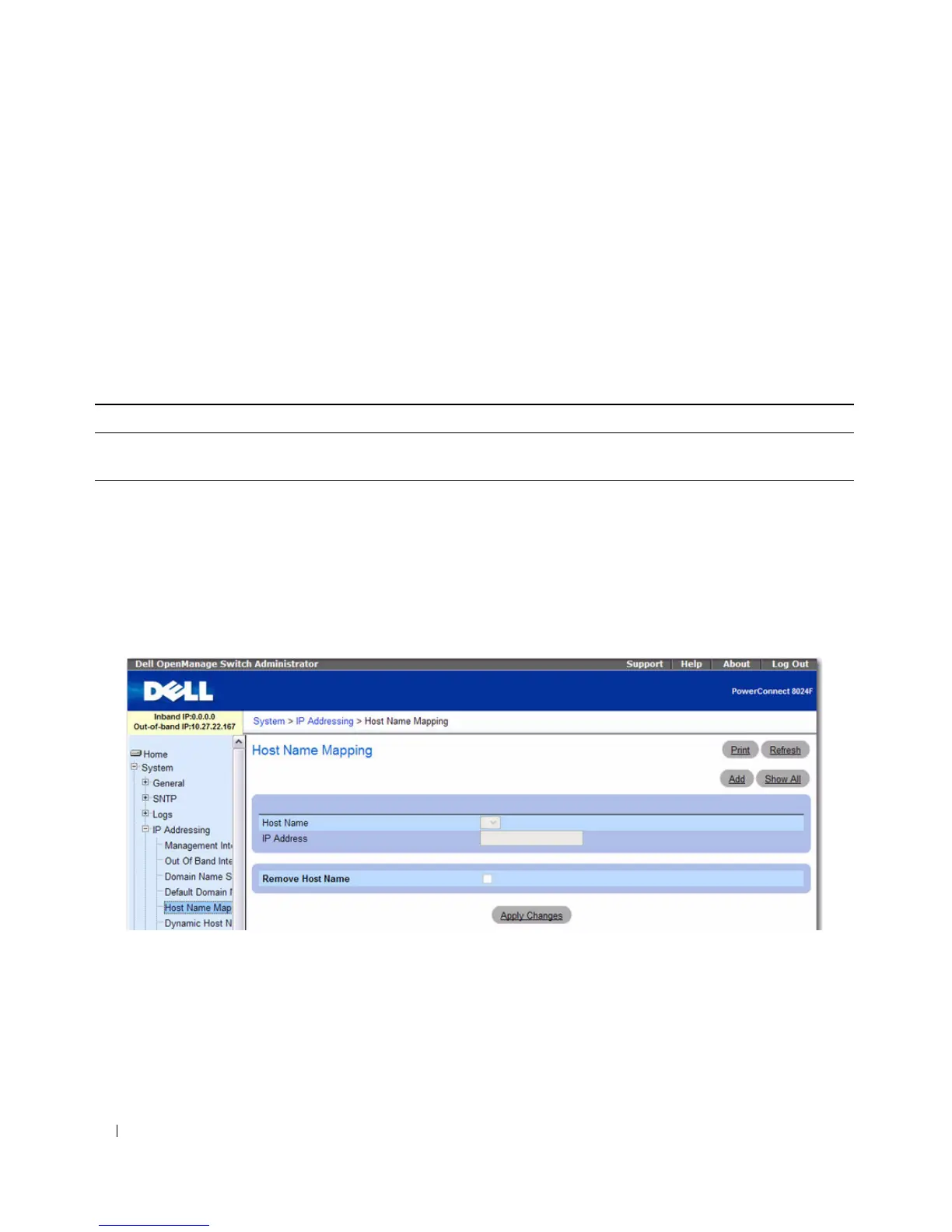 Use the Host Name Mapping page to assign an IP address to a static host name. The Host Name