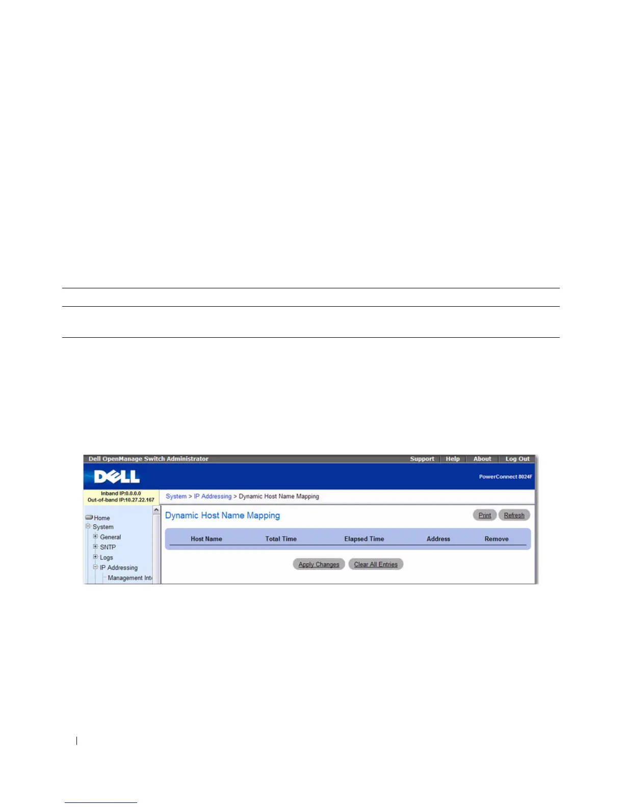 Use the Dynamic Host Name Mapping page to view dynamic host entries the switch has learned.