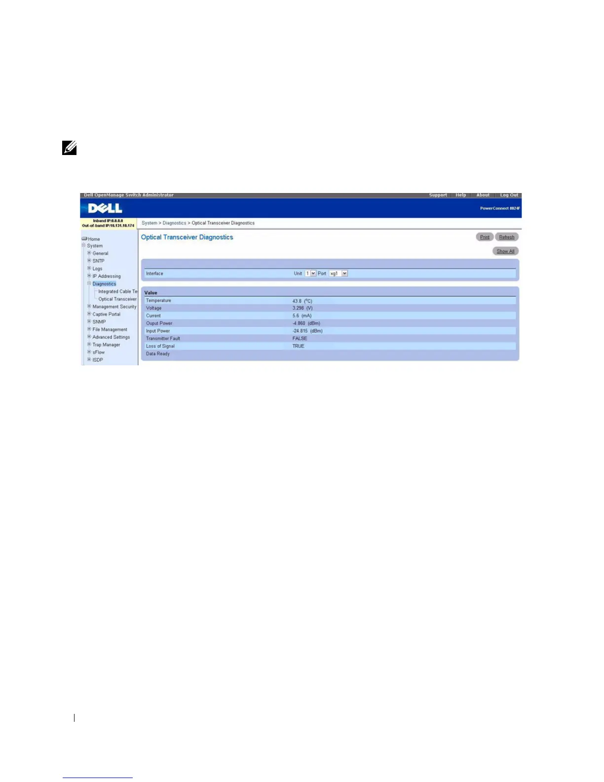 NOTE: Optical transceiver diagnostics can be performed only when the link is present.