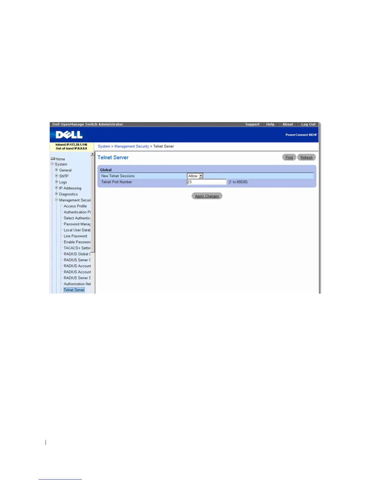 To display the Telnet Ser ver page, click System
