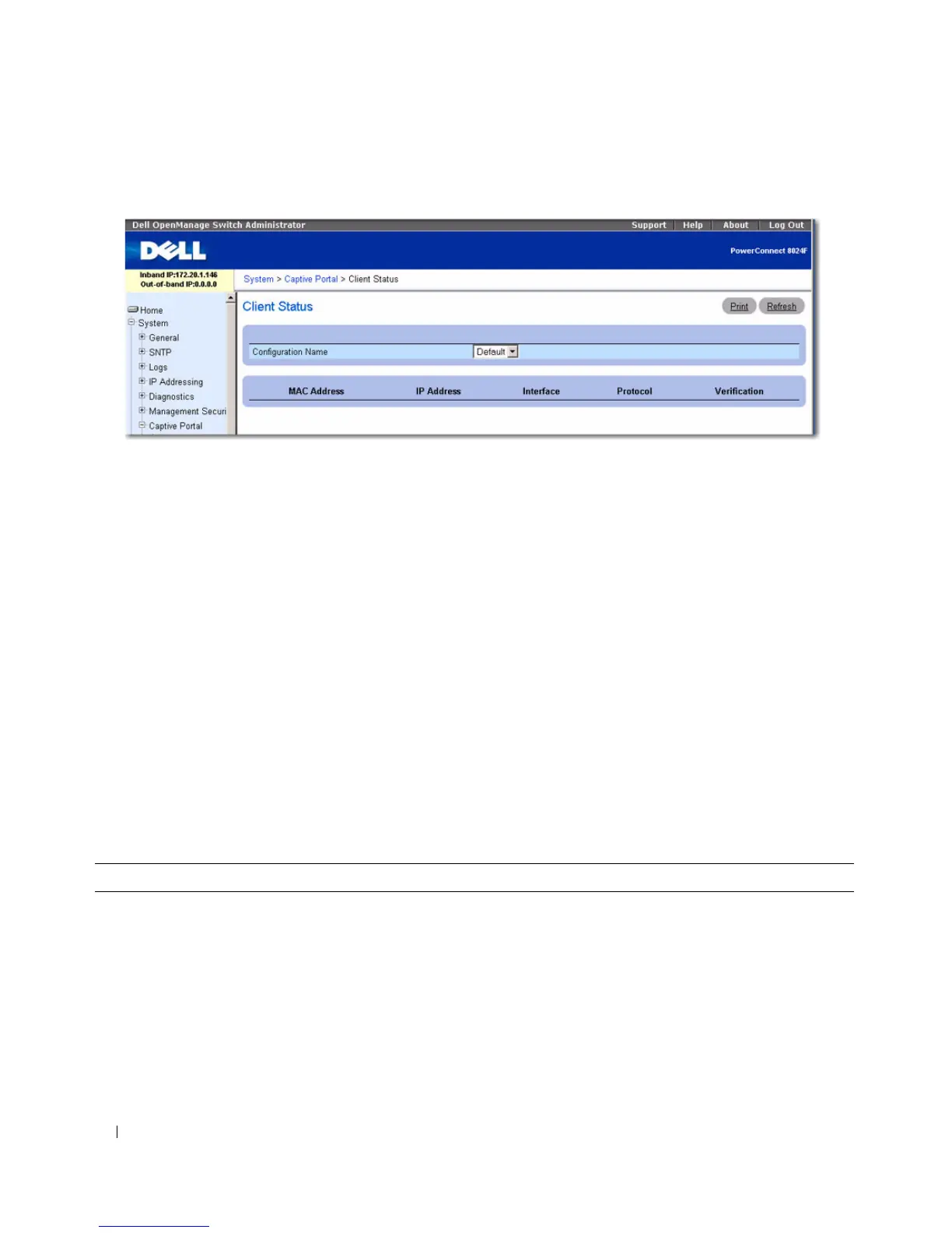 information about the clients connected to the CP configuration, select the CP configuration name