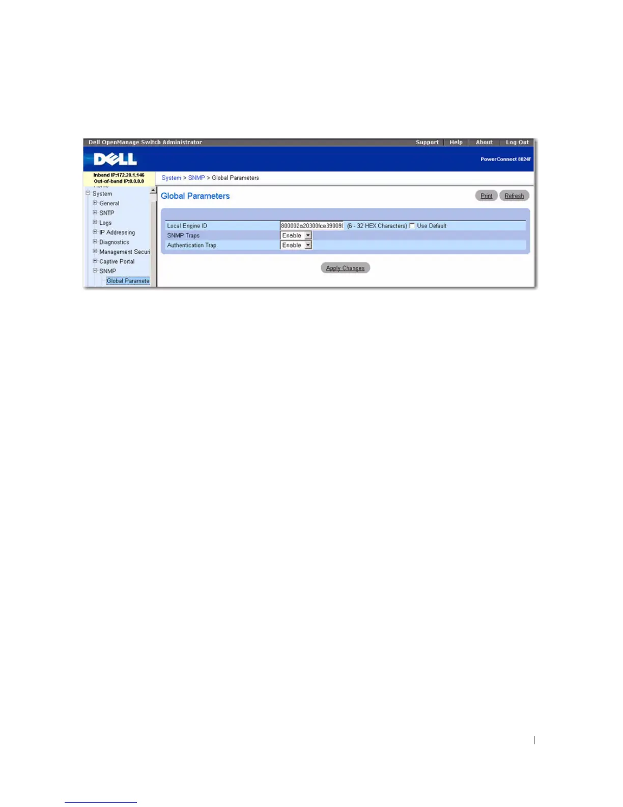 The default SNMP engine ID, based on the MAC address, is created and the device is updated.