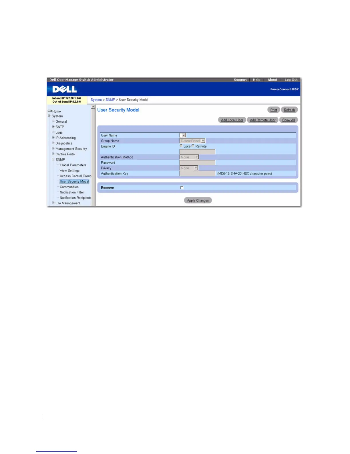 – Remote Engine ID — Indicates that the user is configured on a remote SNMPv3 enabled device.