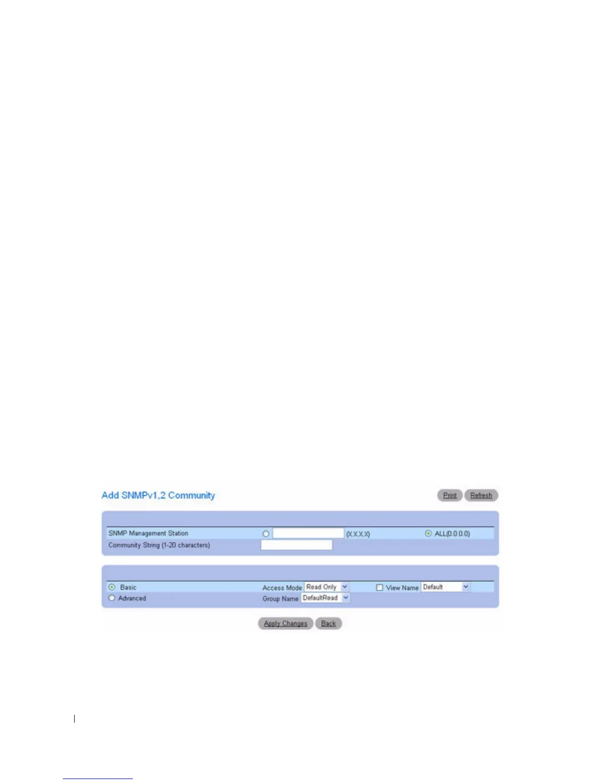 Advanced mode also enables SNMP groups for specific SNMP communities. The SNMP Advanced
