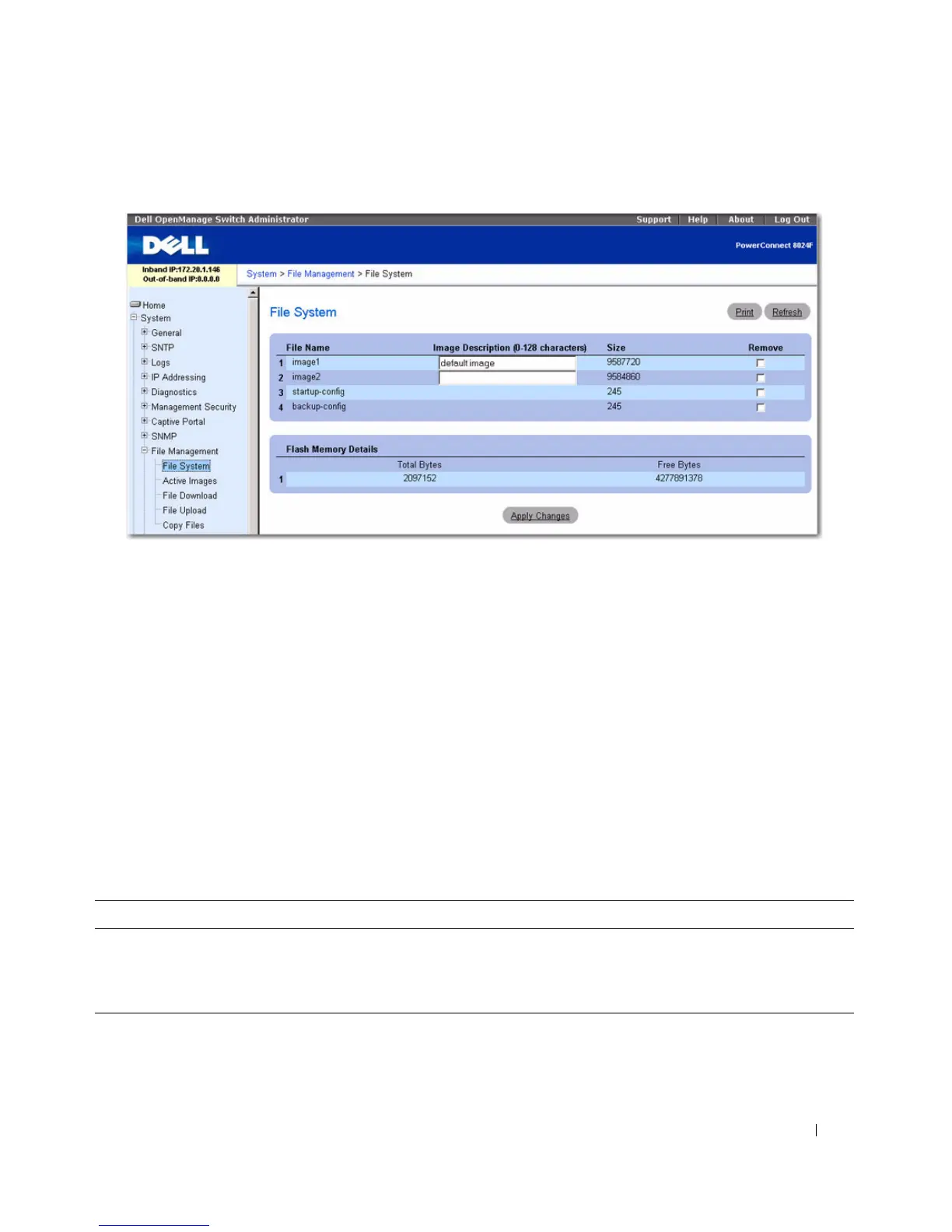 Displays Flash Memory availability details, in terms of total bytes of memory