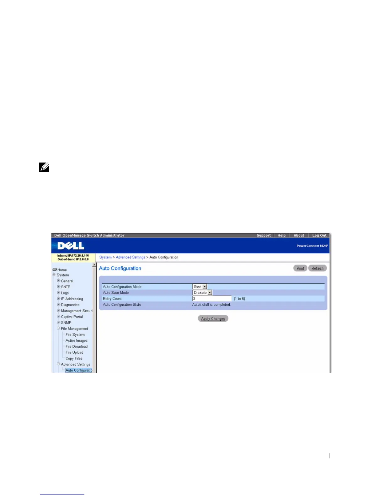 Use the Auto Configuration page to enable the switch to be automatically configured when it is