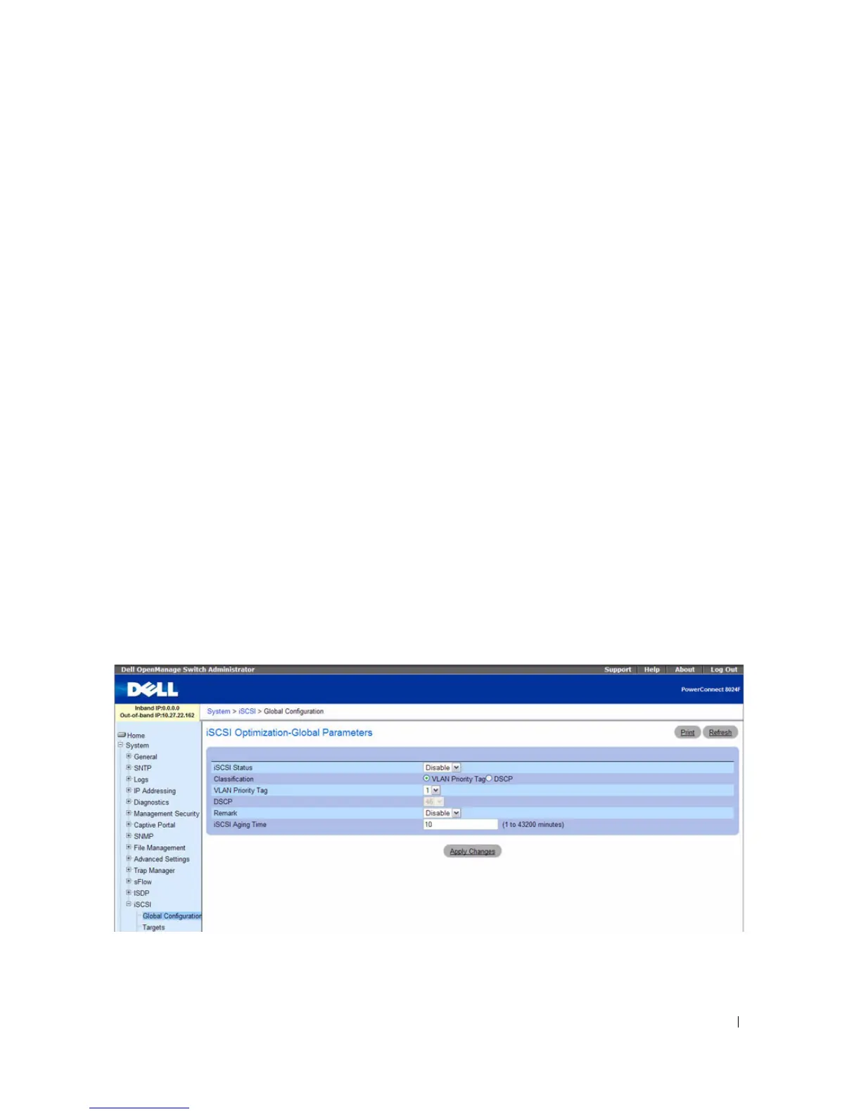 Use the iSCSI Optimization Global Configuration page to allow the switch to snoop for iSCSI