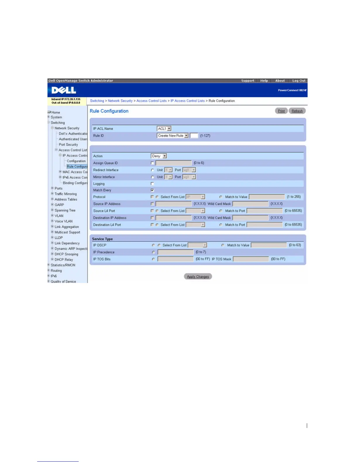it. The new ID is created once Apply Changes is clicked. Up to 127 rules can be created for each ACL.
