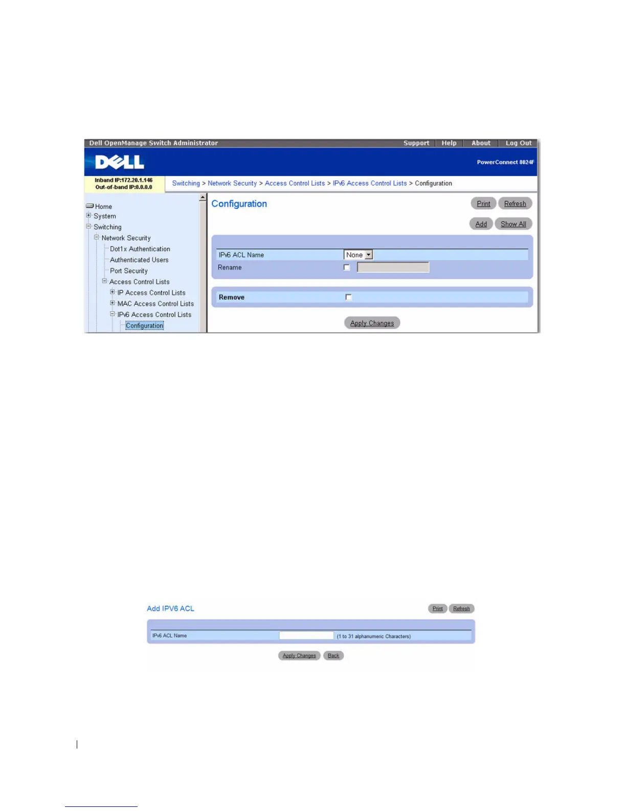— To remove an existing IPv6 ACL, select the ACL from the IPv6 ACL Name menu, select