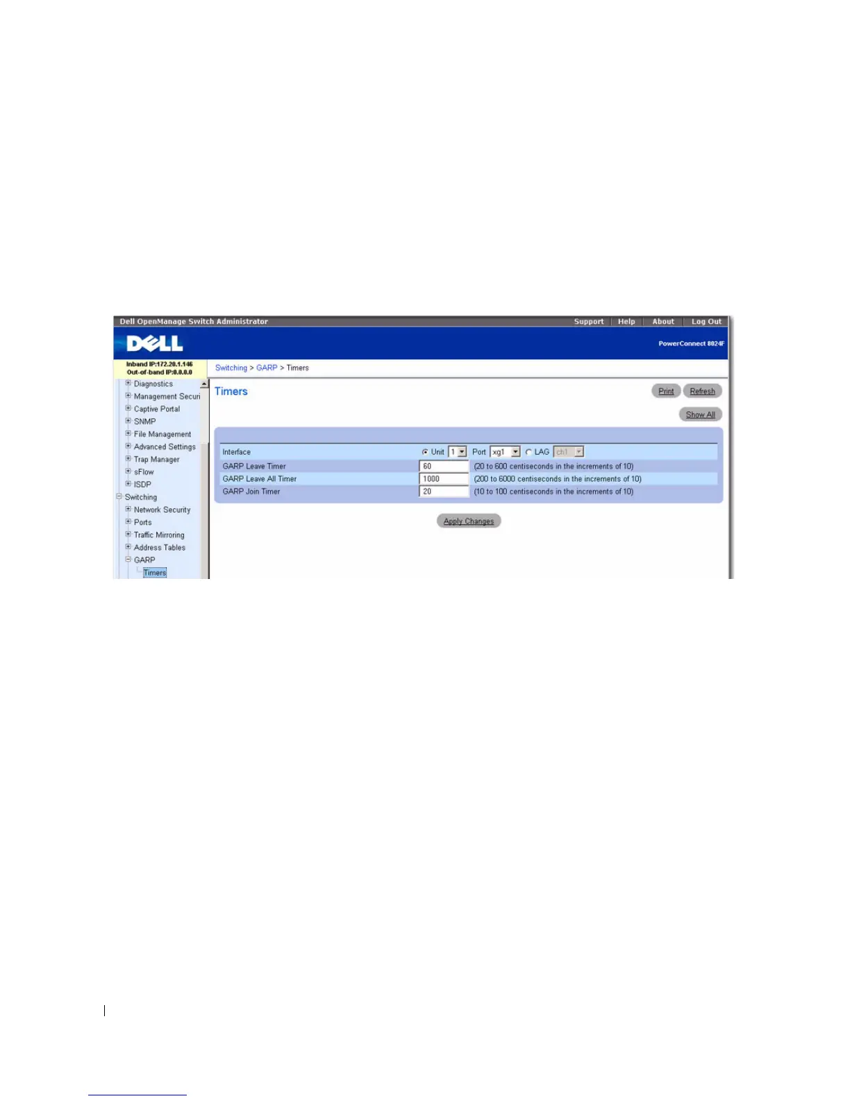 To display the GARP Timers page, click Switching