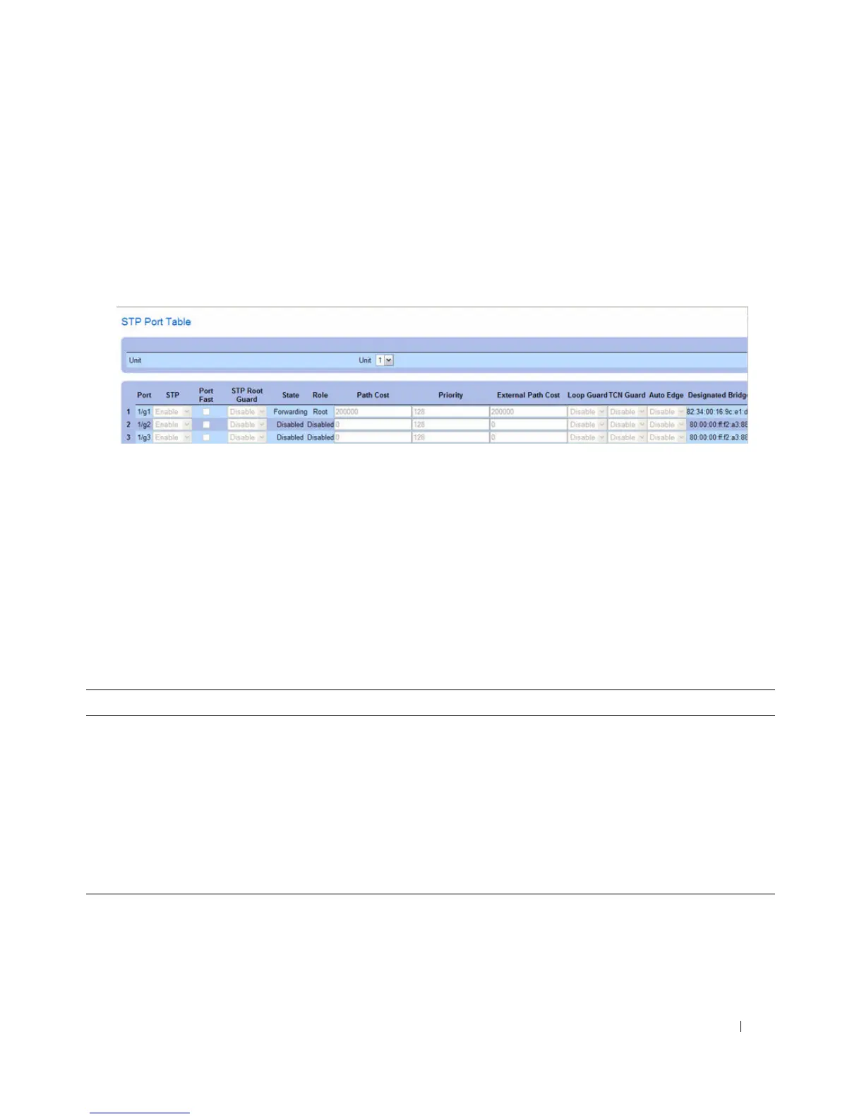 To change the STP settings for one or more ports, select the Edit option for the port(s), configure the