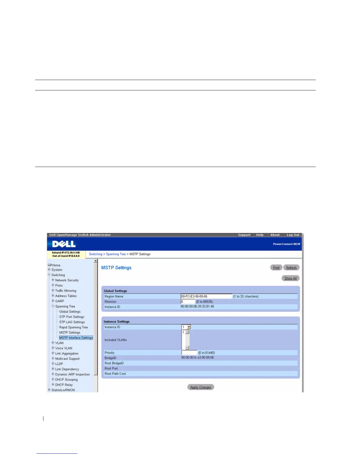 Use the MSTP Interface Settings page to assign MSTP settings to specific interfaces.