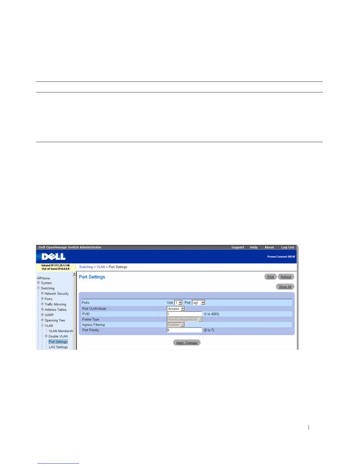 Use the VLAN Port Settings page to identify a port as part of a VLAN, as well as to define and modify