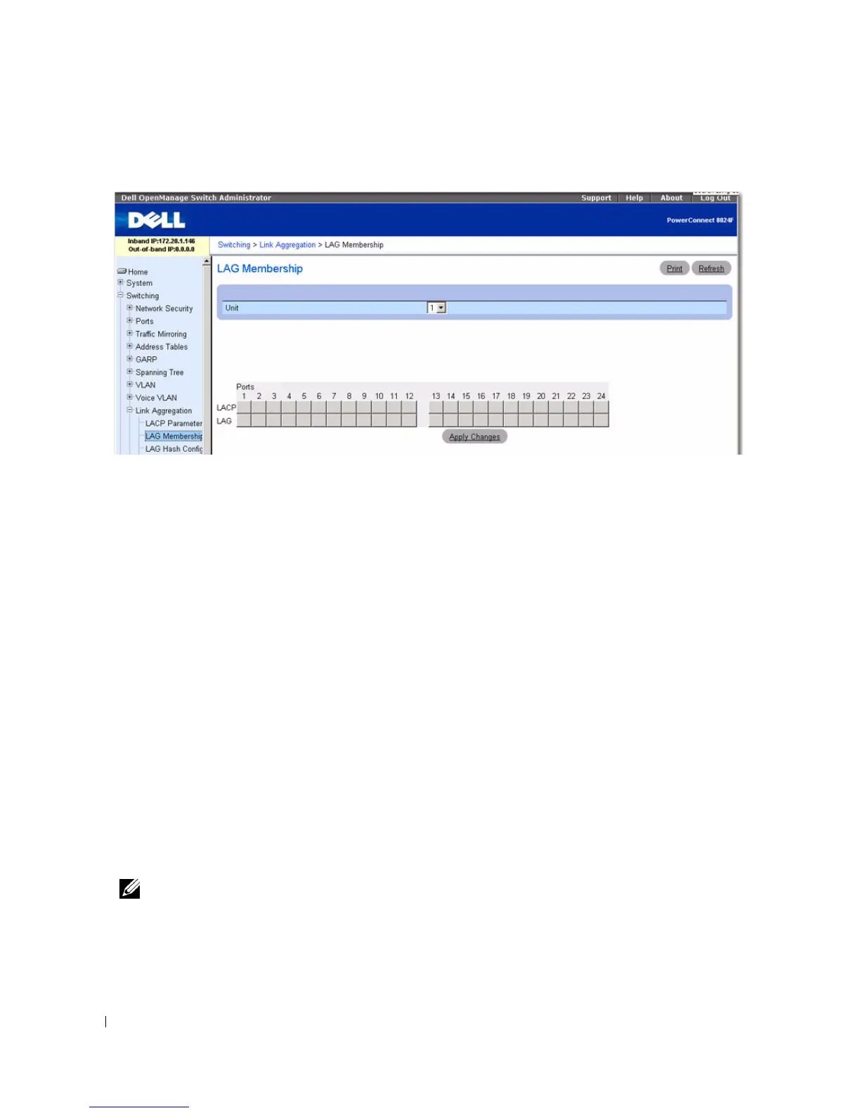 — Aggregates a LAG port to LACP membership. For ports with a number in the LAG row, you