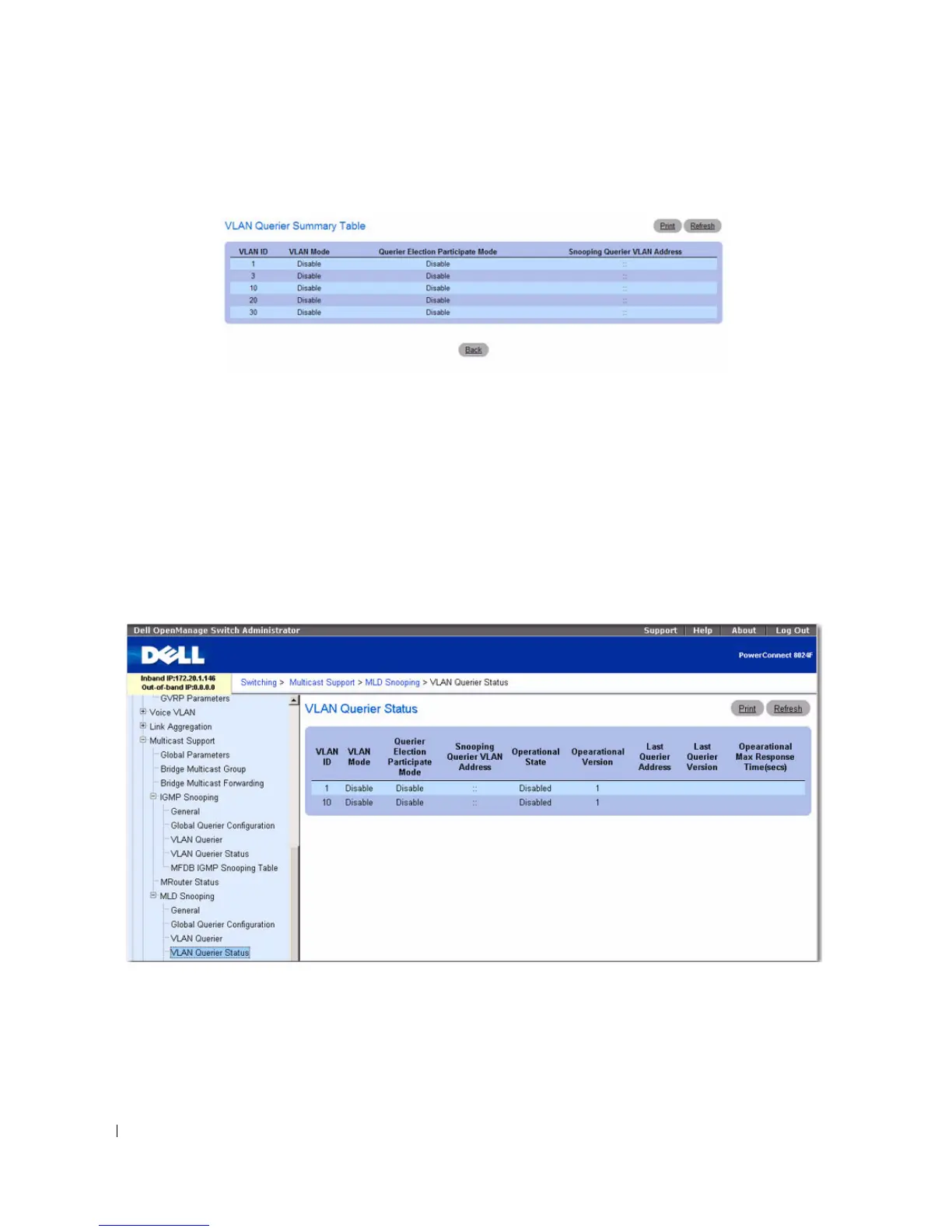 Use the VLAN Querier Status page to view the MLD Snooping Querier settings for individual VLANs.